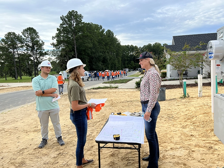 Kara regularly welcomes students to her construction sites, offering real-world experiences that complement academic instruction. From University of Florida M.E. Rinker, Sr. School of Construction Management students to members of the National Association of Women in Construction UF Student Chapter, these tours provide hands-on exposure to the building process, professional problem-solving, and the realities of working in the field.